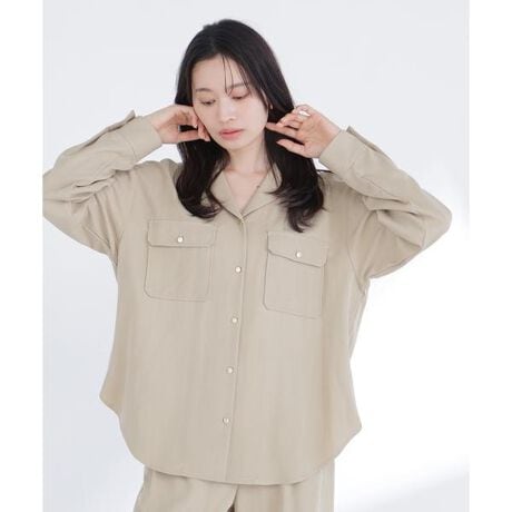 両胸に施したフラップポケットがポイントのシャツ。程よく抜け感のある開襟デザインで、こなれた印象に見せてくれます。白金ボタンをあしらい、カジュアルになりすぎず上品な雰囲気をプラス。シャツとしても軽い羽織としても着回せるデザインです。同素材のパンツと合わせれば、統一感のある洗練されたセットアップスタイルが完成します。<素材>さらりとしたタッチで程よい落ち感のある素材を使用しています。<詳細>仕様・前ボタン裏地・なし透け感・なし / 光沢・なし / 伸縮性・なし生地の厚さ・普通<シリーズ>■パンツ[品番:0176130301] ※モデルの着用画像の場合、光の当たり具合により、実際の色味と異なって見えることがございます。色味は、商品単体の画像をご参照ください。