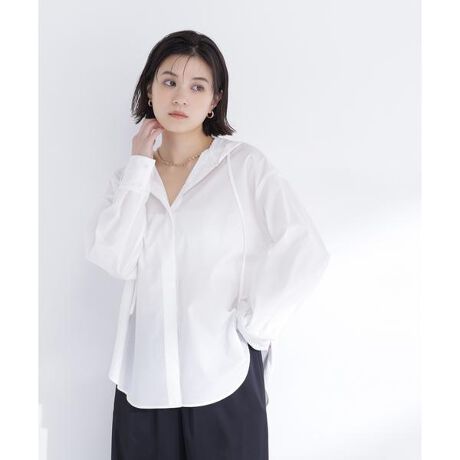 シャツ感覚で羽織れる軽やかなフーディーシャツブルゾン。フードはドロストコード仕様で、コード先の金属チップがカジュアルながらも上品なアクセントをプラス。程よくゆとりのあるシルエットで、デイリーからきキレイめカジュアルまで幅広く活躍する万能アウターです。<素材>パリッとしたハリのあるシャツ生地を使用しています。<詳細>仕様・前ボタン裏地・なし透け感・ややあり / 光沢・なし / 伸縮性・なし生地の厚さ・普通※モデルの着用画像の場合、光の当たり具合により、実際の色味と異なって見えることがございます。色味は、商品単体の画像をご参照ください。