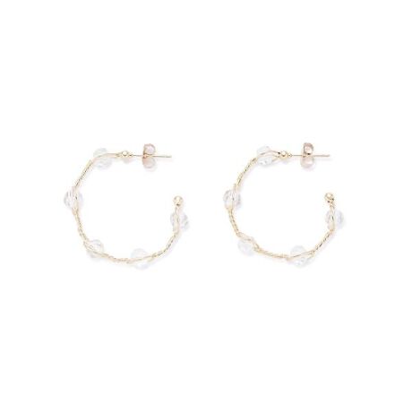 [型番:1216183106]透明感のあるパーツを合わせたねじりフープピアス。ほどよい存在感のあるねじりを加えたフープが、顔まわりを華やかに見せてくれます。フェミニンにもカジュアルスタイルにも合わせやすいアクセサリーです。※モデルの着用画像の場合、光の当たり具合により、実際の色味と異なって見えることがございます。色味は、商品単体の画像をご参照ください。
