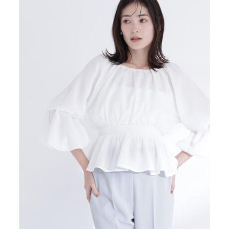 メッシュ素材で仕立てた軽やかなペプラムブラウス。オフショルダーとしても着用できるので、着こなしの幅が広がります。後ろウエストはゴム仕様で、程よいフィット感を実現。シルエットにメリハリが生まれ、スタイルアップ効果も期待できます。<素材>軽いメッシュ素材を使用。細かいメッシュなので透けすぎない風合いです。<詳細>仕様・開閉なし裏地・あり透け感・なし / 光沢・なし / 伸縮性・なし生地の厚さ・普通 ※モデルの着用画像の場合、光の当たり具合により、実際の色味と異なって見えることがございます。色味は、商品単体の画像をご参照ください。