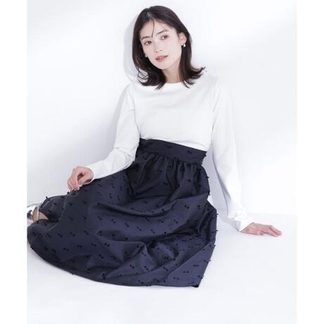 異素材を組み合わせたデザイン性と着やすさを両立したドッキングワンピース。トップスはキレイめなスムースカットソーで滑らかな着心地です。スカート部分はリボン柄ジャガード布帛を使用しており、上品で華やかな印象に見せてくれます。<素材>トップスはしっかりとしたカットソー、スカートはハリのあるタフタ素材にリボンジャガード柄を入れた素材です。<詳細>仕様・後ろファスナー裏地・トップスはなし、スカートはあり透け感・なし / 光沢・なし / 伸縮性・トップスはあり、スカートはなし生地の厚さ・普通※モデルの着用画像の場合、光の当たり具合により、実際の色味と異なって見えることがございます。色味は、商品単体の画像をご参照ください。