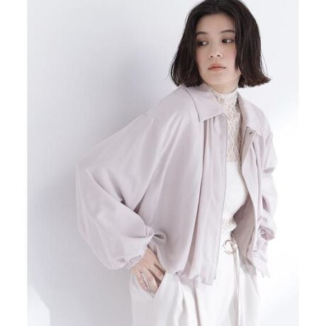 今年らしいトレンド感のあるステンカラーブルゾン。裾は裏地で吊ったバルーンシルエットでフェミニンな雰囲気を演出し、ほどよいショート丈で様々なボトムスと合わせやすい1着。少し落ち感のある素材を使用し、広がりすぎない大人っぽいシルエットが魅力です。<素材>程よい落ち感があり、柔らかい素材を使用しています。<詳細>仕様・前ファスナー裏地・あり透け感・なし / 光沢・なし / 伸縮性・なし生地の厚さ・普通※モデルの着用画像の場合、光の当たり具合により、実際の色味と異なって見えることがございます。色味は、商品単体の画像をご参照ください。