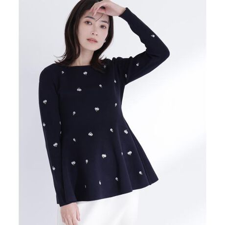 人気のフラワー刺しゅうをあしらった華やかなペプラムニット。フィット&フレアシルエットでスタイルアップを叶えます。女性らしいデザインながら、デイリーにも取り入れやすい一枚です。パンツはもちろん、Iラインスカートとのコーディネートもおすすめです。<素材>適度な肉感とストレッチの効いたニットです。<詳細>仕様・開閉なし裏地・なし透け感・なし / 光沢・なし / 伸縮性・あり生地の厚さ・普通 ※モデルの着用画像の場合、光の当たり具合により、実際の色味と異なって見えることがございます。色味は、商品単体の画像をご参照ください。