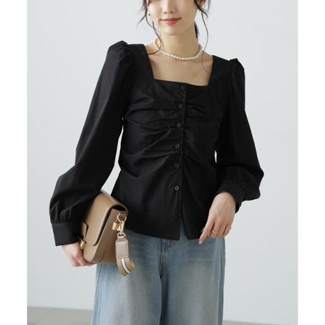 フロントギャザースクエアネックブラウス
