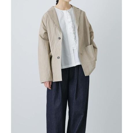遠州染めならではの色味と風合いが雰囲気溢れる生地を使用しています。強風と日光を浴びた独特なムラや細かなしぼが特徴です。さっと羽織るだけで存在感のある着こなしに。ライトな着心地はカーディガン感覚で気軽に取り入れていただけます。パンツ・スカートはもちろんワンピースにも好相性。サロペットに合わせるスタイリングも程よい大人っぽさがプラスされて素敵ですよ。かっちりし過ぎないのでオンオフ問わずコーディネートに大活躍。季節を問わない素材感は春先の肌寒さ残る時期や梅雨寒、秋〜冬手前のシーズンと長く重宝します。ユニセックス対応の2サイズ展開でご用意しました。同素材のシャツやボトムを合わせるコーディネートもおすすめです。