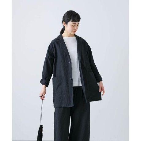 遠州染めならではの色味と風合いが雰囲気溢れる生地を使用しています。強風と日光を浴びた独特なムラや細かなしぼが特徴です。さっと羽織るだけで存在感のある着こなしに。ライトな着心地はカーディガン感覚で気軽に取り入れていただけます。パンツ・スカートはもちろんワンピースにも好相性。サロペットに合わせるスタイリングも程よい大人っぽさがプラスされて素敵ですよ。かっちりし過ぎないのでオンオフ問わずコーディネートに大活躍。季節を問わない素材感は春先の肌寒さ残る時期や梅雨寒、秋〜冬手前のシーズンと長く重宝します。ユニセックス対応の2サイズ展開でご用意しました。同素材のシャツやボトムを合わせるコーディネートもおすすめです。