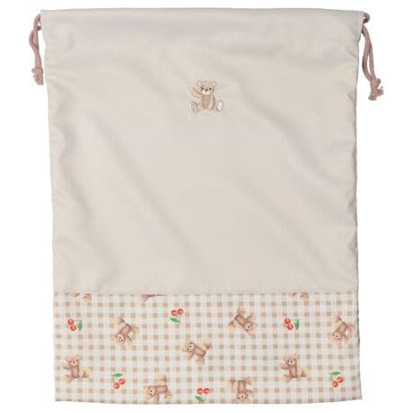 入園・入学準備品!通園、通学、遠足や普段のおでかけなどにも!たて38cm・横31cm「Lサイズ」巾着袋・きんちゃく袋です。体操服入れ、体操着袋やシューズ入れとして学校用にも、普段の小物入れやおもちゃ入れ、お出かけやお泊りの時にも使える大き目サイズ。ラベンダーはユニコーン、ベージュはくまの刺繍入り。無地と総柄の切替デザイン。同じ柄で通園バッグ(B27621)、巾着(B27637)、ランチョンマット(B27830)、エプロン(B27829)、レッスンバッグ(B27620)、ナップザック(B27622)、シューズバッグ(B27623)があるので、入園、入学準備で色々なアイテムを同じ柄に揃えることも出来ます。【アイテム】 雑貨 カジュアル お洒落 オシャレ かわいい 可愛い 普段着 デイリーウェア お出かけ 子ども こども 女児 女の子 ガールズ キッズ ベビーサイズ トドラーサイズ 幼稚園 保育園 小学校 通園 通学 小学生 遠足 旅行 2026年春夏物新作 丸高衣料 小物 小物入れ 巾着袋 きんちゃく 小物入れ 体操着入れ袋 パープル ラベンダー 薄紫色 入園入学準備品 クマ 動物 アニマル キッズフォーレ