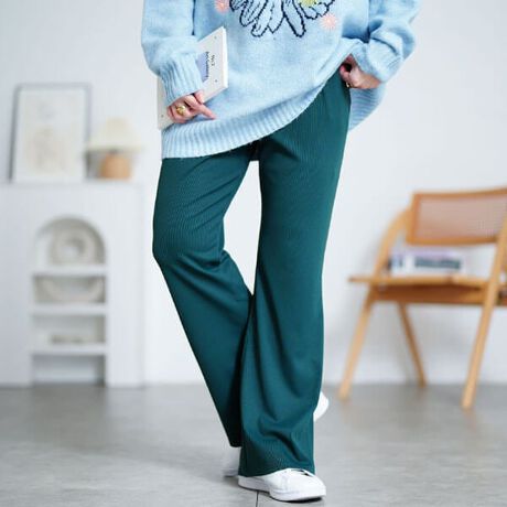 伸縮性抜群で着心地ストレスフリー♪すらりと脚長見せできちゃう魔法のようなストレッチテレコフレアパンツ登場です!フィット&フレアのシルエットで穿くだけでスタイルアップ☆深め股上設計なのでぽっこりお腹をしっかり包み込んでくれるので立ち座りも安心◎伸縮性に優れた程よく厚みのある生地で通年着回しが可能です☆どんなスタイルにも取り入れやすいシンプルなデザインで着回し力抜群♪