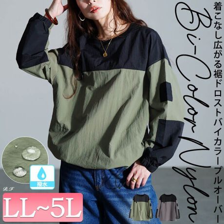 【大きいサイズ】 撥水裾ドロストバイカラープルオーバー 大きいサイズ レディース トップス