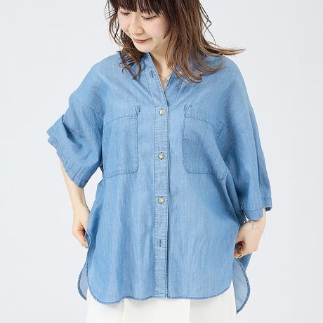 マルイウェブチャネル   /   ルージュ・ヴィフ ラクレ   /   トップス   /   ブラウス   /   【JOHNBULL/ジョンブル】シアーデニムハーフスリーブシャツ/半袖/コットン