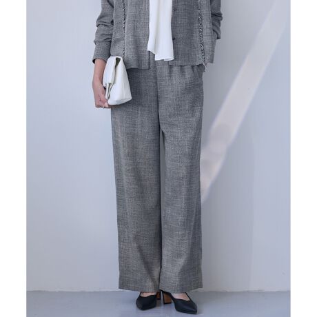 ■デザイン軽さが特徴のツイード素材を使用したワイドパンツです。シンプルなシルエットながら、ツイードの華やかさと程よいカジュアルさ両立し、シーンレスに活躍します。ウエストはゴム仕様、内側にドロスト付きなのでラクな穿き心地が叶います。