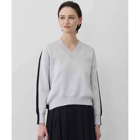 ■デザイン人気の上質ニットスウェットが、今季はVネックデザインで登場。ニットならではのコンパクトな目面と程よいツヤの表面感が、カジュアルすぎず高級感ある印象です。ゆったりリラクシーなボディながら、袖周りはスッキリと仕上げました。袖口はリブ仕立てですが締め付け感のないサイジングになっています。ボトムを問わず合わせやすく、きれいめからカジュアルまで着回せるニットプルオーバーです。