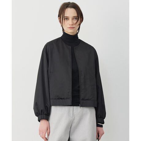 ■デザイン取り外し可能なボウタイ付きのブルゾンジャケット。ボウタイを外すと、ノーカラーブルゾンとしても着用いただけます。ボリュームのある袖コンシャスなデザインで、メンズっぽくなりがちなブルゾンをエレガントに表現しました。総裏仕立てですが、軽い着心地なのもポイントです。カジュアルにももちろん、きれいめにも羽織れる万能な一枚です。