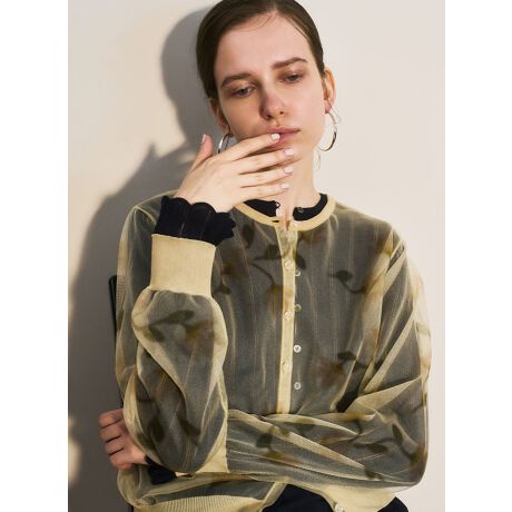 シルク混の上品な光沢があるシアーニットカーディガン。