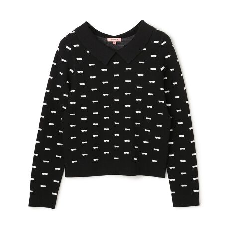 小さなリボンモチーフを並べたようなジャカード柄が印象的プルオーバー。コンパクトなシルエットに加え、きちんと感を添える襟付きデザインで、甘さの中に程よい上品さを漂わせます。襟元には細いラインのアクセントを加え、顔まわりを華やかに演出。シンプルなボトムスもTOCCAらしく可愛くなる主役級トップスです。同素材でお作りしたカーディガンもございます。