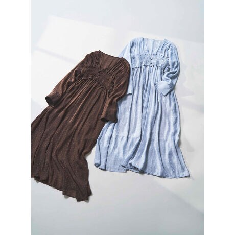 キラキラと程よい光沢が上品な、オーガンジーのジャガード素材でワンピースをお作りしました。