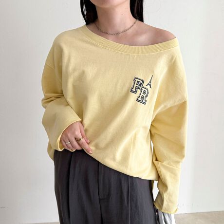 ラフに肌見せも楽しめるオフショルプルオーバー