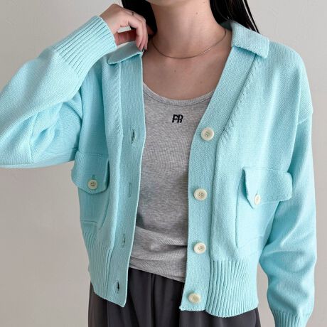 ・コットン100%のシャリっとしたタッチの糸を使用したニットカーディガン