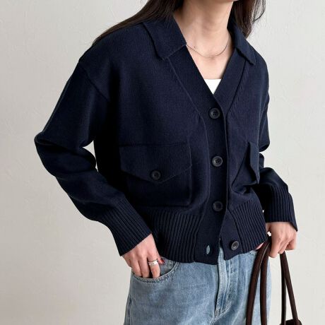 着心地軽やかなコットン衿付きカーディガン