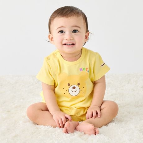 ミキハウス ホットビスケッツのフェイスプリントショートオール。