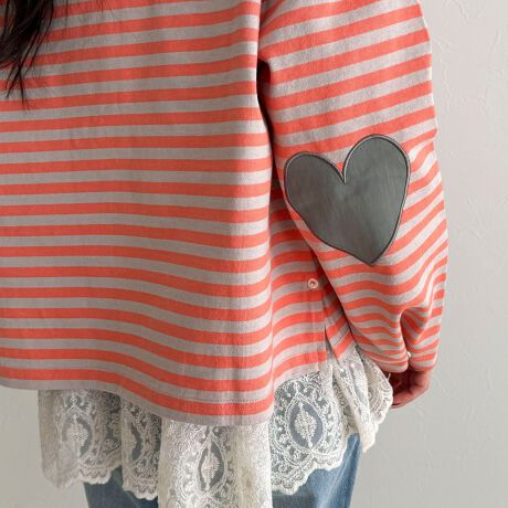 ・ハートのエルボーパッチが可愛いボーダーT