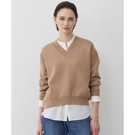 ■デザイン人気の上質ニットスウェットが、今季はVネックデザインで登場。ニットならではのコンパクトな目面と程よいツヤの表面感が、カジュアルすぎず高級感ある印象です。ゆったりリラクシーなボディながら、袖周りはスッキリと仕上げました。袖口はリブ仕立てですが締め付け感のないサイジングになっています。ボトムを問わず合わせやすく、きれいめからカジュアルまで着回せるニットプルオーバーです。