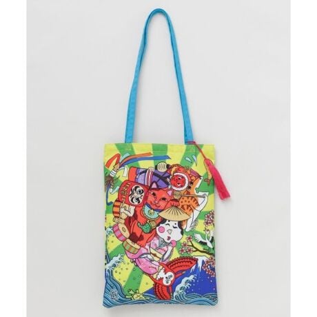 [型番:7IKP6101-2026]【倭物やカヤ×鈴木ひょっとこ】伝統×現代の融合を魅力的に描く、画家・鈴木ひょっとことのコラボ商品。鮮やかな色彩と独特な世界観が際立つトートバッグ。肩掛けにも便利な長めの持ち手仕様で日常使いはもちろん、アートをまとう感覚でコーデのアクセントにもおすすめ。