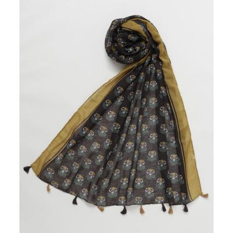 [型番:LCOP6113-2026]手触りの良い大判ストールは、風合いのある柄とボリュームが魅力。柄によって異なるタッセルがアクセントになり、巻くだけでコーディネートの主役に。