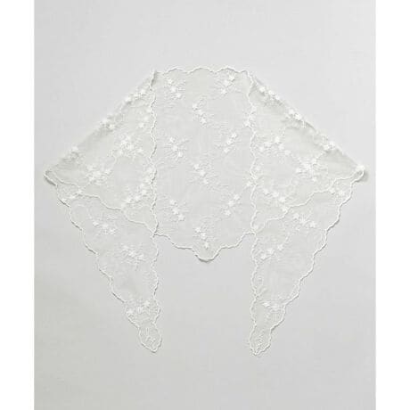 [型番:LCOP6121-2026]三角形のシルエットが印象的なレースストールは、髪や肩に巻くだけで上品なアクセントに。軽やかな透け感と繊細な編み模様が、装いにやわらかな華を添えます。