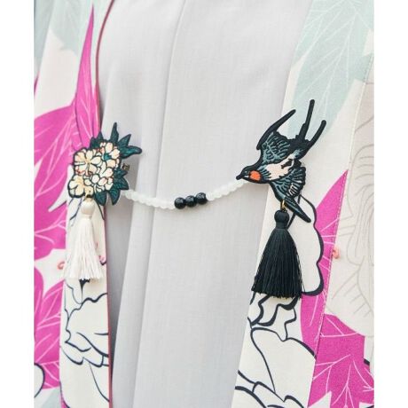 [型番:75YZ6101-2026]対となる和モチーフが印象的な羽織留め。犬と猫、夫婦(めおと)、花鳥の組み合わせに遊び心と縁起の良さが込められています。ビーズ部分は取り外し可能で、ブローチや髪飾りとしても使える万能デザイン。揺れるタッセルが華やかさを添え、装いを一段と格上げします。