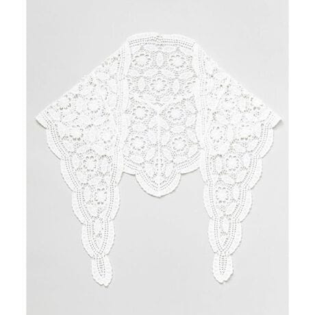 [型番:LCOP6116-2026]繊細なレースを使用した三角形型のストールは、頭や肩に軽やかに巻ける優雅なアイテム。透け感のある編み模様が、コーディネートにクラシカルな印象を添えます。