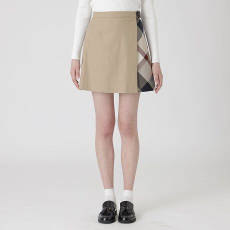 [型番:55R02705__]◆パーシャル使いしたクレストブリッジチェックがポイントのキュロットパンツ【Design】トラディショナルな巻きスカートをキュロットパンツにアレンジしたアイテムです。フレッシュなミニ丈ですが、パンツなのでインナーを気にせず着用いただけるのが嬉しいポイントです。後ろウエスト部分はゴム仕様になっているので、快適な着用感です。【Styling】ダンボールフーディー(55P04716)とのコーディネートがおすすめです。