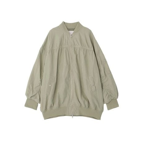 柔らかなギャザーで魅せる、大人のためのMA-1程よく光沢のある素材感と、たっぷりと施したギャザーが印象的な一着です。ハードになりがちなMA-1デザインに、やさしい丸みと女性らしさをプラスしています。長め丈のシルエットが腰まわりを自然にカバーし、体のラインを気にせず着用できます。ボリューム感がありながらも軽やかな着心地で、さっと羽織るだけでこなれた印象に仕上がります。スカートやワンピースと合わせた甘辛スタイルはもちろん、パンツと合わせた大人カジュアルにも好相性です。季節の変わり目にも取り入れやすく、幅広いコーディネートで活躍します。日常使いからお出かけまで、頼れる存在になる一枚です。※モデル着用画像は、光の当たり具合で色味が違って見える場合がございます。※お使いのモニター環境によって商品の色味が違って見える場合がございます。
