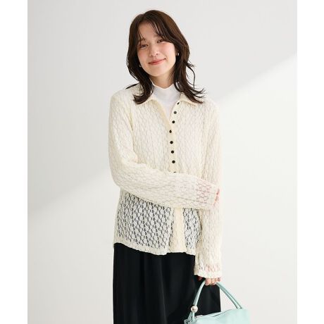 上品な透け感で、日常にやさしい華やぎを繊細なレース素材が印象的な一着です。ほどよい透け感が軽やかさを演出し、着るだけで大人可愛い雰囲気に仕上がります。衿付きデザインなので、甘さの中にもきちんと感があり、カジュアルからきれいめまで幅広く活躍します。肌当たりのやさしい素材感で、長時間の着用でも快適です。インナー次第で表情が変わり、季節を問わずコーディネートを楽しめます。デニムやスカートと合わせるだけで、程よく上品なスタイルが完成します。日常使いはもちろん、お出かけや食事会にも取り入れやすく、着回し力の高いアイテムです。※モデル着用画像は、光の当たり具合で色味が違って見える場合がございます。※お使いのモニター環境によって商品の色味が違って見える場合がございます。