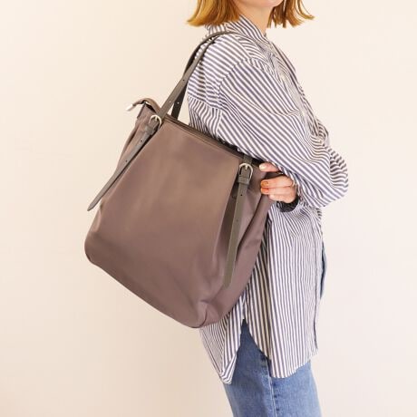 ・かっちりしたお洋服にもカジュアルにも合わせやすい、365日頼れるバッグです。