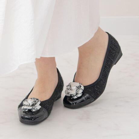 足元をぱっと明るく見せてくれる可憐な雰囲気で、シンプルなコーデにも上品なアクセントを添える一足です。