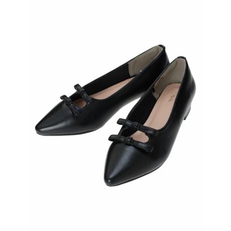 ダブルリボンが足元にフェミニンな印象を与えるパンプス。