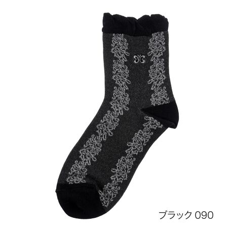 ●特徴:・クルー丈・スパイラル柄 片面刺しゅう ワンポイント・表糸綿100%・綿コーマ・保湿・柔らか 光沢感 履き口ゆったり