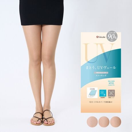 毎日の紫外線対策を、もっと手軽に。365日、絶え間なく降り注ぐ紫外線、日々忙しく過ごす中でも、しっかりと紫外線対策をしたい。そんなあなたの生活に寄り添いながら、手間をかけずに肌を守る新感覚のUVケアブランドが誕生。「まとう、UVヴェール」高透明・高発色ながらも紫外線遮蔽率が高いストッキングのような極薄生地でUV遮蔽率90%以上を実現。肌に密着し、まるで着けていないような自然な見た目で、ファンデーションのように気になる毛穴・キズ・くすみをカバーしてくれます。涼感素材と遮熱機能で暑さと強い日差しの季節にピッタリです。抗菌防臭加工でニオイ対策もGOOD!つま先が開いているオープントゥタイプなのでサンダル等でも合わせやすいですよ。
