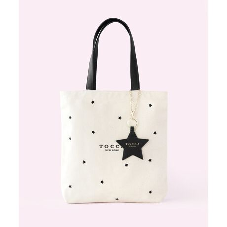 リズミカルなモチーフ刺繍やトレンドのラッキーチャームがアクセントになった大人可愛いキャンバストート。ベースには質感のあるキャンバス地を使用。綺麗見えする合皮ハンドルを組み合わせて、抜け感のあるシルエットに仕上げています。チャームはチェーンで取り外しが可能でキーリングも付いているので他のチャームをプラスしたりご自身のバッグに付け替えたり、色んなアレンジ楽しめます。