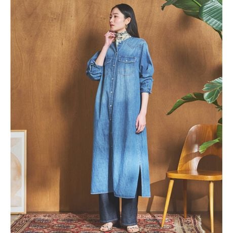 ストンと落ちる美しいIラインシルエットは、体のラインを拾いすぎず、ゆったりとした快適な着心地を提供します。縦長デザインのフラップポケットと、デザイン性の高いバックスタイルのヨークが、単調になりがちなデニムワンピースにメリハリをプラス。視線を自然と上に集めることで、スタイルアップ効果を発揮します。ロング丈ながらも、両サイドに入った深めのスリットが足さばきを良くし、動きやすさを確保。さらに、レイヤードスタイルで着こなした際には、軽やかな抜け感を演出します。