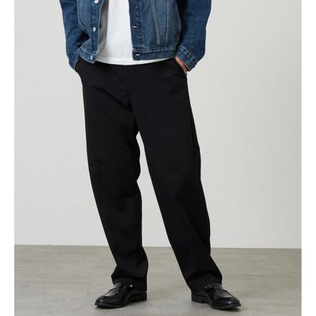 ヒップとモモ回りにゆとりがあり、膝から裾にかけてややテーパードさせた万人向けのルーズテーパードです。素材の特性を活かす為、ウエストベルトも伸びる様に設計しています。