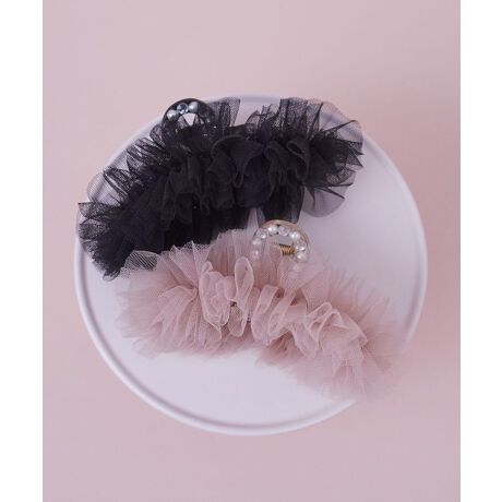 ボリューム感のあるチュールフリルとビジュー付きのクリップがキュートなバンスクリップ。