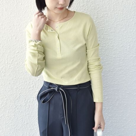 程よくシアー感のあるヘンリーネックTシャツ。