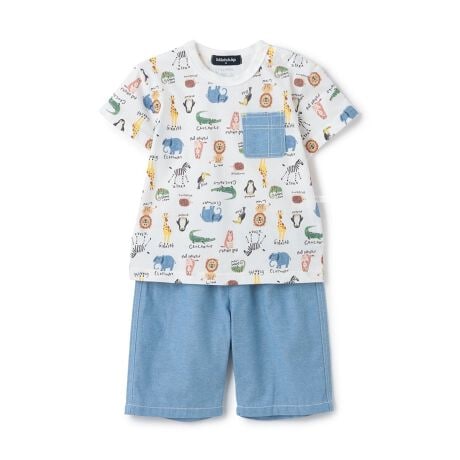お出かけコーデが即完成するセットアップです。Tシャツはいろいろな動物のプリントデザインで賑やかに、パンツはステッチの配色でおしゃれに仕上げました。Tシャツのポケットにパンツと同じ生地を使用することで、統一感をアップ。軽い素材感で着やすいのもこだわりポイントです。おそろい柄のアイテム(品番:5061510と)をご用意しています。内側にお名前を記入できるタグつき。【おすすめの着用時期は春夏シーズン】
