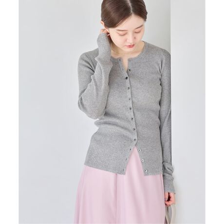 繊細なリブ編みが上品な印象を与える、ハイゲージのニットカーディガン。