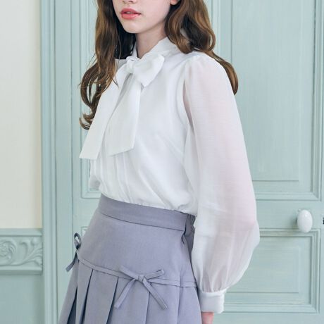 ヴィンテージライクで繊細なシアー感が上品なボウタイブラウス。