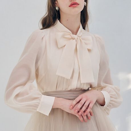 ヴィンテージライクで繊細なシアー感が上品なボウタイブラウス。