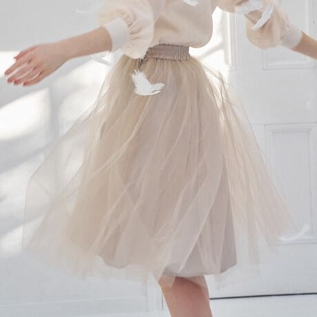 バレリーナを思わせるボリュームたっぷりのエアリーなチュールスカート。