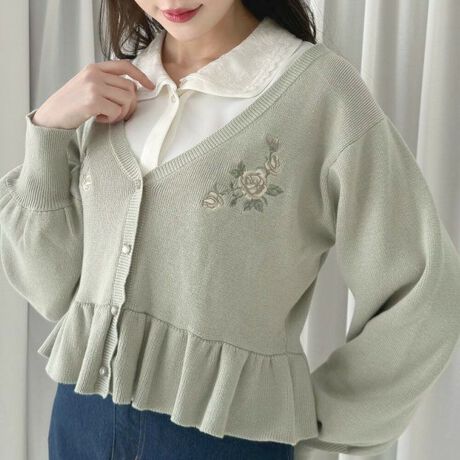 ペプラムシルエットがとびきりクラシカルなニットカーディガン。